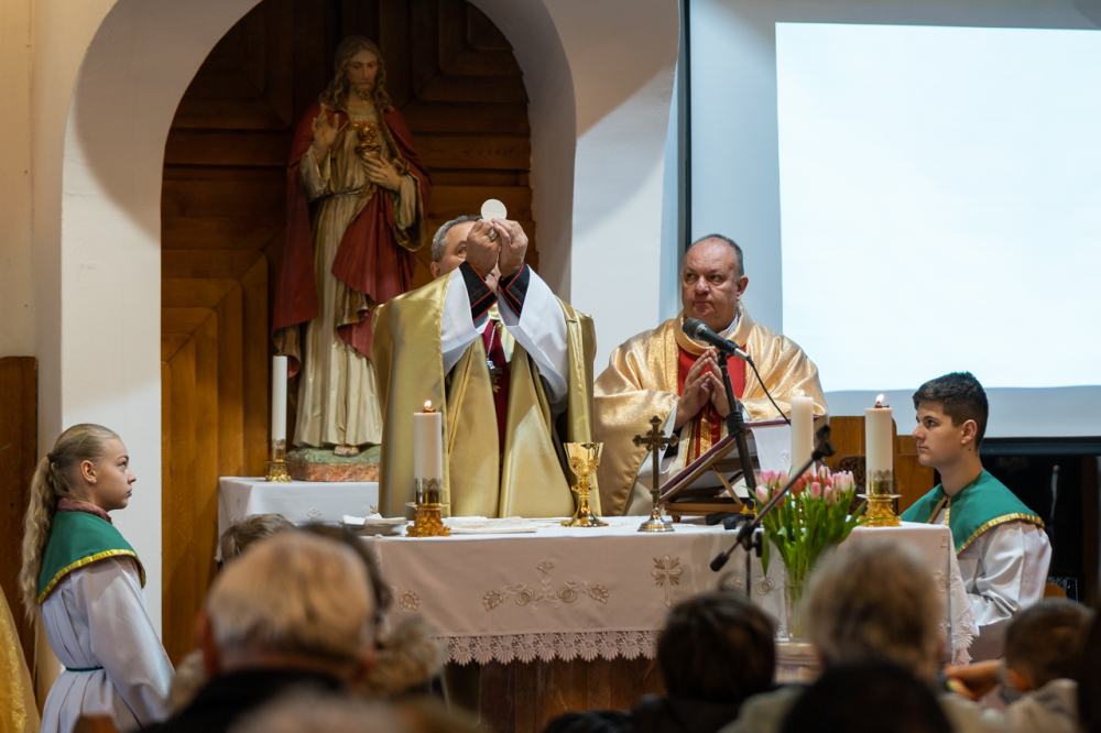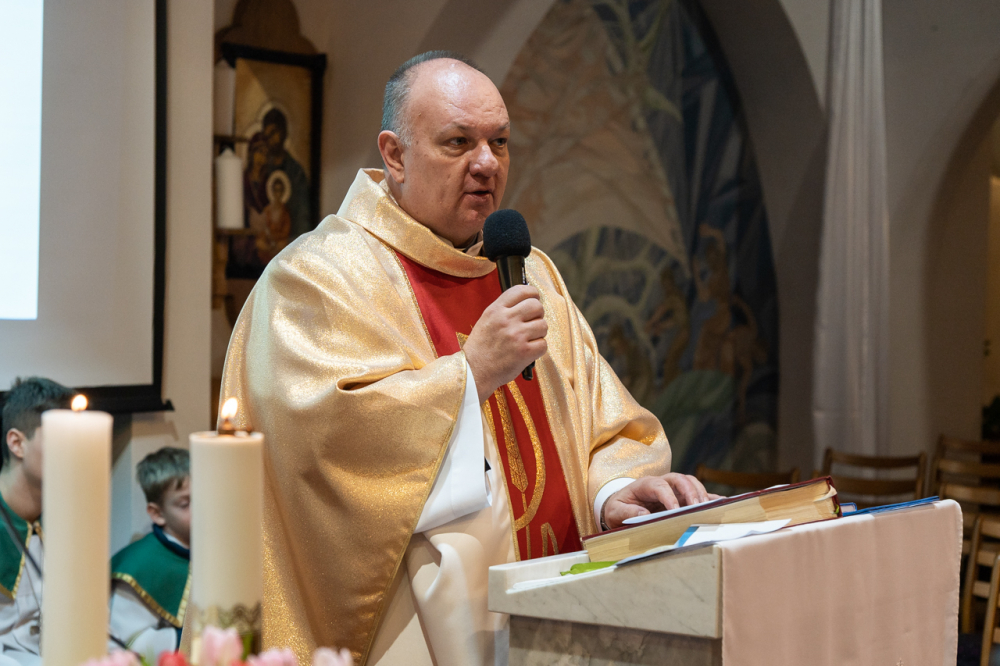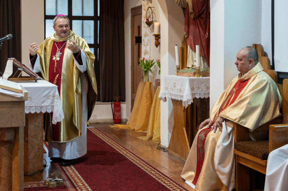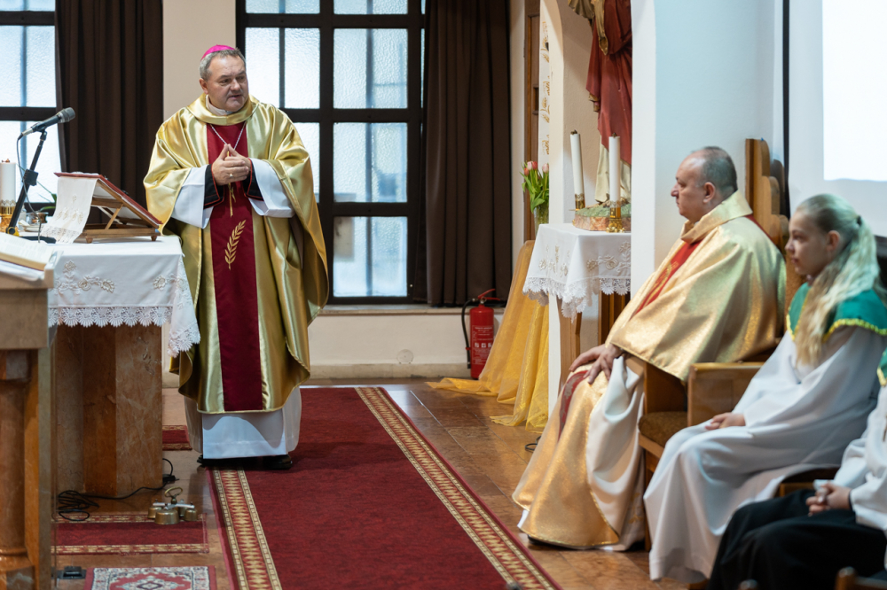 Kifejtette, ahhoz, hogy a családi asztalon megterített vasárnapi ebéd tényleg tápláló és jóízű legyen, örömmel és szeretettel, derűsen kell az asztalhoz ülni. Ellenkező esetben bármilyen finom az étel, nem lesz tápláló. Ez vonatkozik a szentmiséken való részvételre is: bármilyen szépen előkészítették az oltárt, ha nem a szeretet és a béke hoz hozzá bennünket, akkor nem fogja az életünket az Isten szándéka szerint szépíteni és gazdagítani. Ha nincs béke a szívünkben és nem békültünk ki testvéreinkkel, akkor zárva van a szívünk, nem megy az át az isteni szeretetet, mert akadály van benne Isten, önmagunk és embertársaink felé. „Előbb teremts békét, utána tárd az Úr elé a kéréseidet, a lelkedet és a szívedet” - mutatott rá beszédében a püspök.
