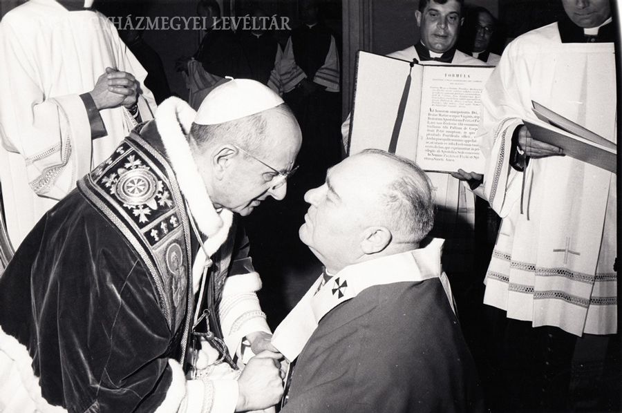 VI. Pál pápa ráadja Cserháti püspökre a pécsi püspököknek akkor még kiváltságként megjáró érseki palliumot