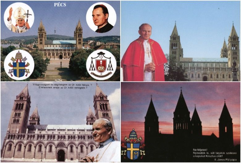 Az első pápalátogatás képeslapja (Forrás: Vatera) és II. János Pál pápa7