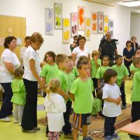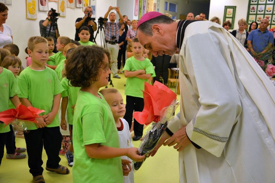 Az óvodások műsorral köszöntötték a főpásztort, aki megáldotta a csoportszobákat és biztató szavakkal üdvözölte az intézmény dolgozóit, a szülőket és a gyerekeket.