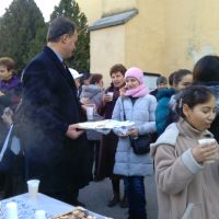 siklos01A siklósi katolikus templomban advent harmadik vasárnapján a 8.30 órakor kezdődő szentmise keretében a Szent Imre Katolikus Általános Iskola diákjai gyújtották meg az adventi koszorú harmadik gyertyáját, majd az iskola tanári kara a templom előtti téren látta vendégül a szentmisén résztvevő híveket.