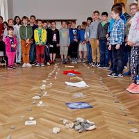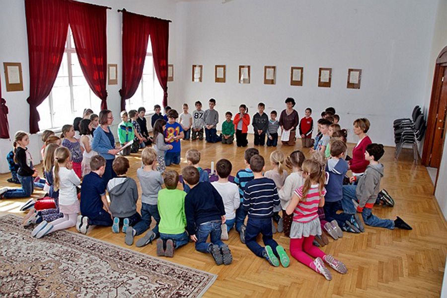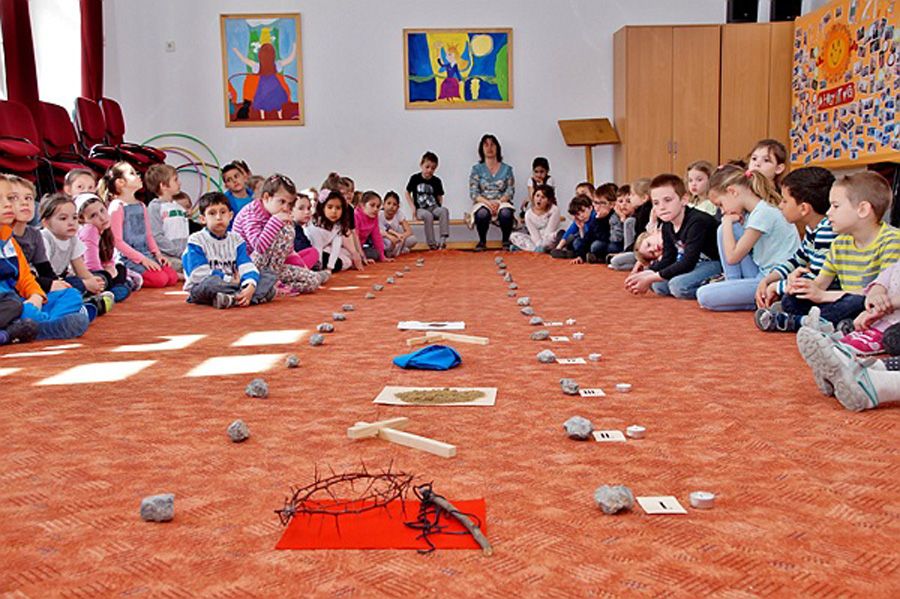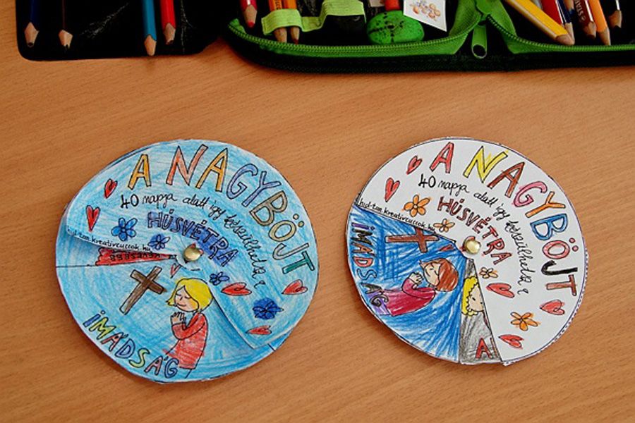 A hittanárok és a tanítók Köcsky Tiborné vezetésével érdekes, változatos, interaktív és lelki elmélyülésre is alkalmas programokat szerveztek az alsósoknak. A gyermek keresztút alapötletét Nagy Zoltán munkája adta. Minden állomásnál egy lezárt gyufásdoboz rejtett egy-egy jelkép értékű tárgyat: apró korbácsot, pici kendőt Jézus arcával, szeget, követ, homokot, pici fagerendát, INRI feliratos lapocskát, stb. A kinyitott skatulyákat végül egy-egy égő mécsessel együtt a kápolnában meglévő keresztúti stációk elé helyezték. Padlóképes keresztutat tavaly építettek először az iskolában. Igazán szemléletes és a gyerekek életkori sajátosságainak megfelelő alkotás a Joseph Kett által kidolgozott módszer alapján összeállítható, hozott anyagból készült, padlón elterülő keresztút.