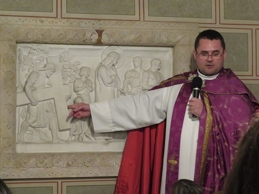 A keresztúton részt vettek az óvodába járó gyermekek szülei, de érkeztek érdeklődő nagyszülők és testvérek is. A székesegyház altemplomában Kajtár Edvárd a székesegyház plébánosa vezette végig a résztvevőket a keresztút állomásain. Az altemplom domborművein keresztül mutatta be Jézus útját és beszélt arról a gyerekeknek, hogy mi történt vele húsvét előtt.