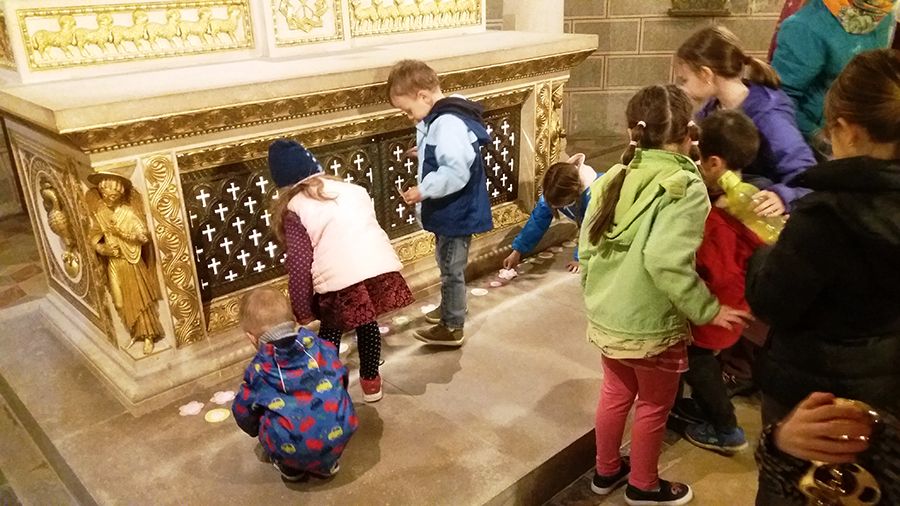 Április 5-én délután keresztútra hívta a családokat a Szent Mór óvoda közössége a székesegyház altemplomába.