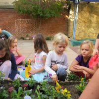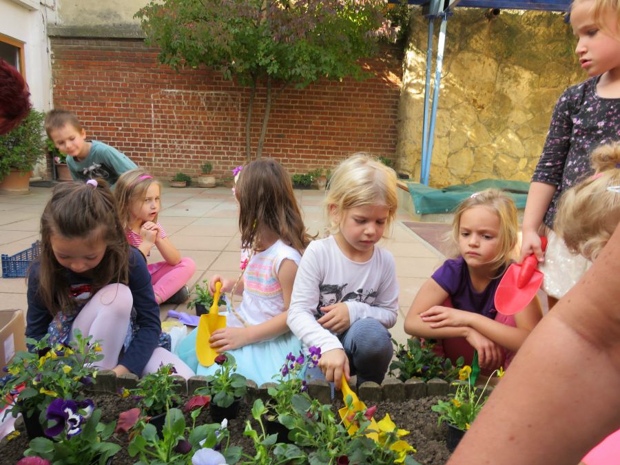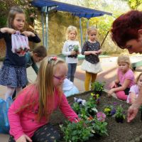 A nagycsoportos óvodások munkájának köszönhetően megszépült az óvoda udvarának virágos kertje. A tavasszal kiültetett egynyári virágok helyére kerültek a szülők által felajánlott árvácska palánták és tulipánhagymák.