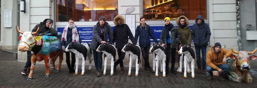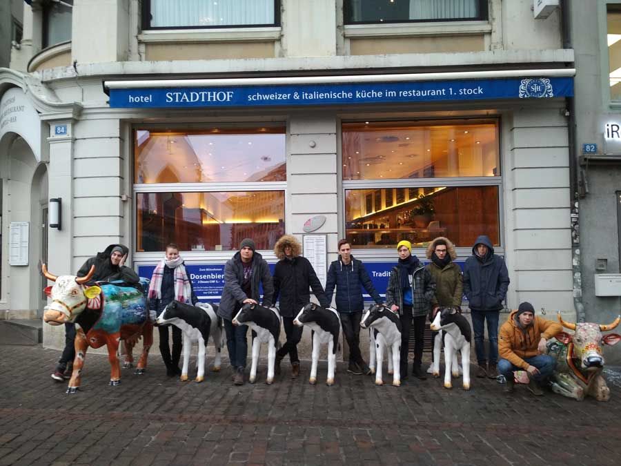 A svájci Riehen városban található Schlagzeug- und Marimbaschule Edith Habraken zeneiskolával 2017-ben kezdődött a kapcsolatfelvétel, kint tanító magyar kolléganőm, Sier Tímea kezdeményezésére. A Tornado Band együttest 2018 tavaszán fogadtuk Pécsen, és a Magtár Látogatóközpontban adtunk közös koncertet. Az idei tanévben ránk várt az utazás. A náluk hagyományos újévi koncertre hívtak meg minket. Repülővel indultunk 2019.01.25-én Svájcba. A reptéren szülők vártak” Wilkommen Ritmusvarázs” felirattal. A zeneiskolába vittek minket, ahol darts, kirakó, ügyességi korongjáték, kötetlen zenélgetés és vacsora várt ránk. Másnap Basel belvárosába látogattunk.