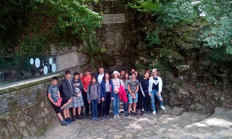 A 7. b osztály az Abaligeti Cseppkőbarlang előtt