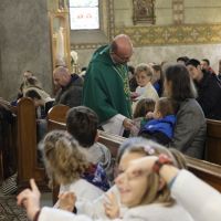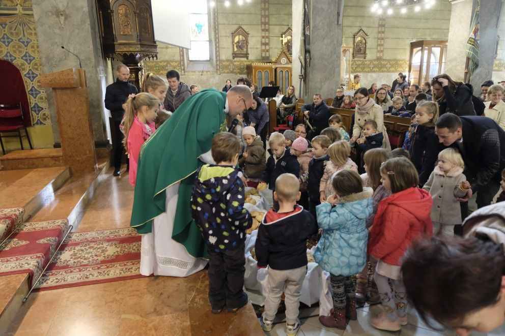 A gyerekszentmise homíliájában Attila atya a szeretet fontosságát hangsúlyozta, miközben felhívta a figyelmet a szegények patrónusának cselekedeteire. „Árpád-házi Szent Erzsébet olyan embereket szeretett, akikkel mások csúnyán bántak, akiket mások nem vettek tudomásul. Királyi hercegnőként kiállt az elesettek mellett és kellő bátorsága volt ahhoz, hogy segítséget nyújtson számukra. Ezért most mi is fogadjuk meg együtt, hogy bátrak leszünk a szeretetre olyan emberekkel szemben is, akik elsőre talán nem rokonszenves, nem barátságosak számunkra.” – mondta a plébános, majd arra kérte a fiatal hívőket, hogy lépjenek közelebb a padsorok előtt lévő kenyérrel teli kosarakhoz. Nem kellett kétszer kérni az óvodás és kisiskolás jelenlévőket, boldogan állták körbe a kenyereket, és emelték karjuk a kosarak felé, ahogyan Attila atya is tette. A kenyérmegáldást csend, rácsodálkozás és béke övezte. Nem volt lökdösődés, nem volt durcázás, minden szülő és óvópedagógus mosollyal az arcán követte, ahogy a kicsik a szertartás során jelen voltak. Hogy ilyen hamar célba ért a homília üzenete vagy Árpád-házi Szent Erzsébet példája nyűgözte le a gyermekeket, netán Kalkuttai Szent Teréz figyelme, nem tudni, mindenesetre tapinthatóvá vált a szeretet a Paksi Jézus Szíve Templomban. Mindezt gitárral kísért ének, majd néhány gondolat követte.