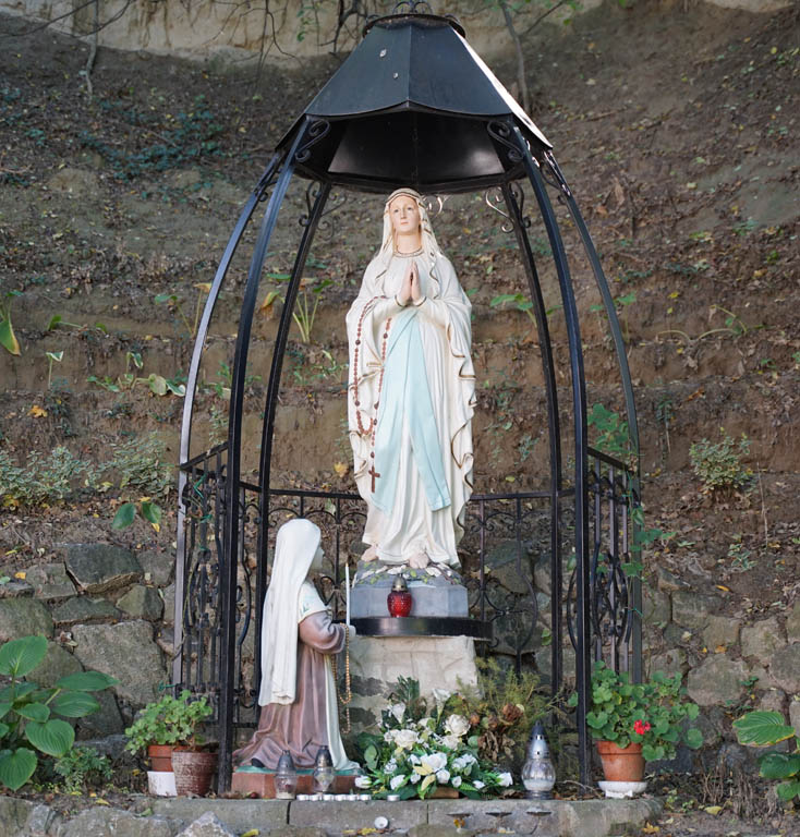 A Remete-kápolnában a 19. század elején ajándékba kapott mariazelli Mária-kegyszobor másolata látható. A Remete-kápolna mellett többszáz éves, illatosan virágzó hársfák árnyékában kálvária vezeti fel a híveket a Szenvedő Krisztus szobrához.