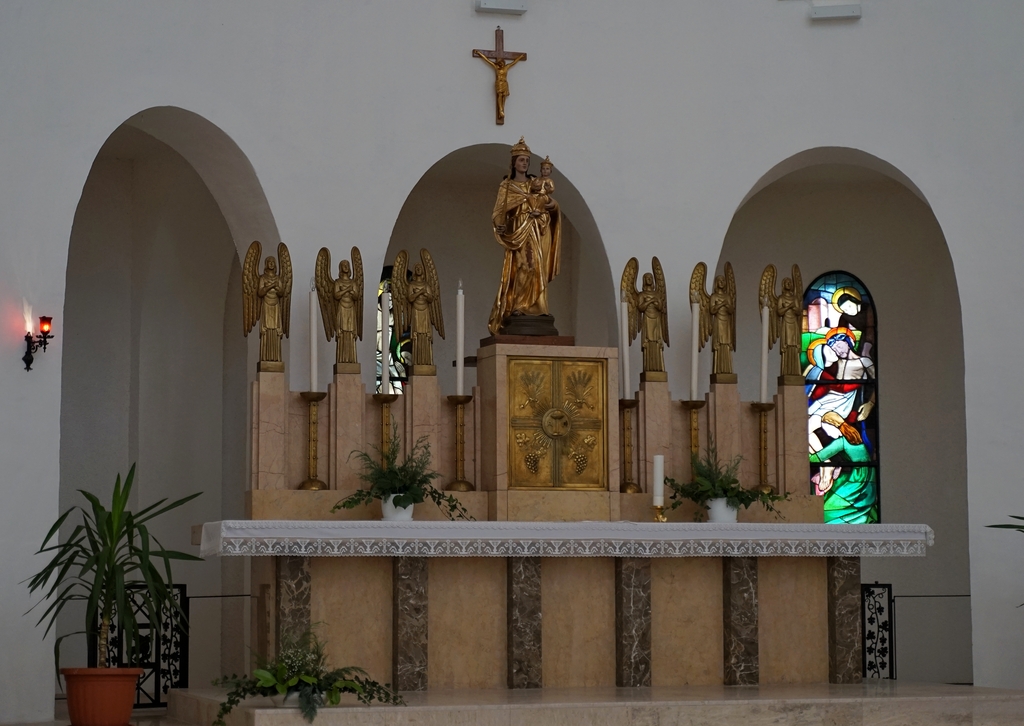A 16. században elmenekített Boldogasszony-szobor 1956-ban került a Fogadalmi templomba, ahol ma is a főoltáron kap helyet.