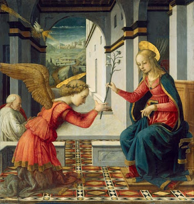Az angyali üdvözlet napja, „ANNUNTIATIO”, Jézus fogantatásának ünnepe, emiatt pontosan kilenc hónappal előzi meg a karácsonyt. Egyike a legtöbbet ábrázolt bibliai jeleneteknek, amikor Gabriel arkangyal meglátogatja Máriát, hogy hírül adja a megtestesülés örömhírét.