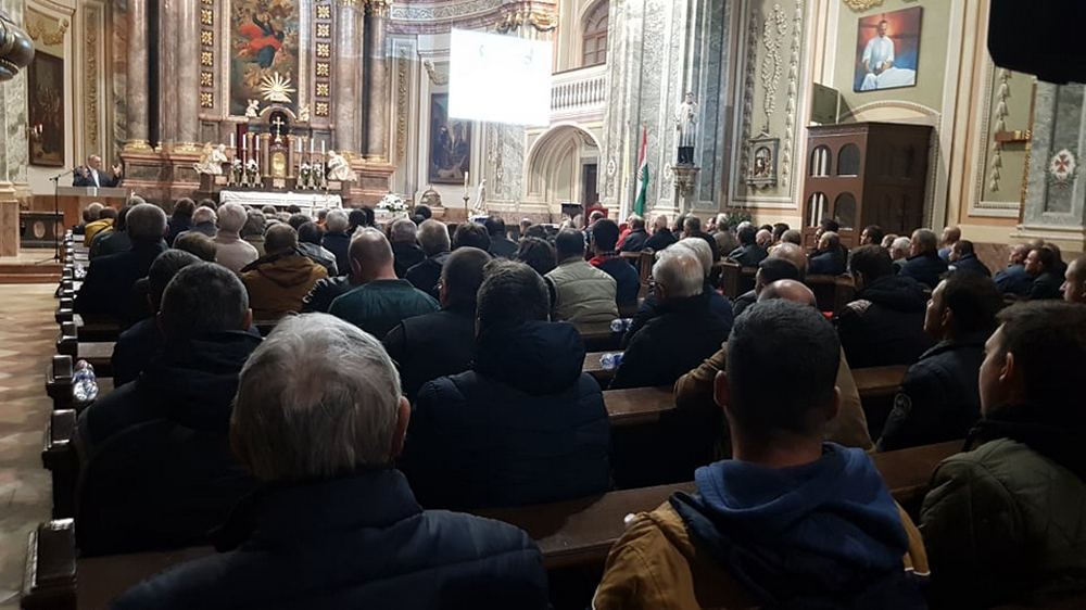 Megdöbbentő erőt sugárzott a találkozó zárásaként, zenei kíséret nélkül, kétszáz férfitorokból felszakadó ősi himnuszunk, a Boldogasszony Anyánk kezdetű ének.