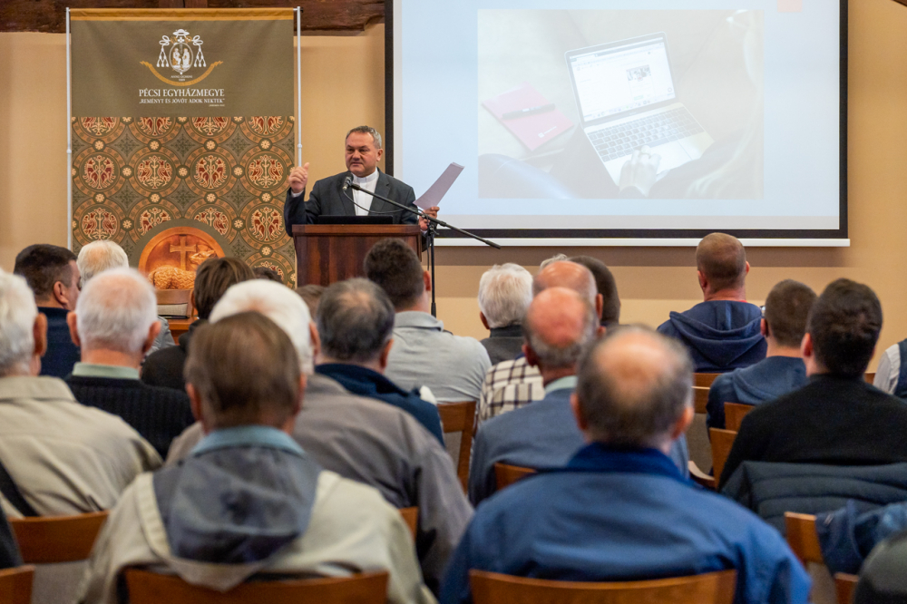 Mintegy 150-en csatlakoztak a férfitalálkozók két pécsi estéjén az évad második nagy témakörének előadásaihoz a Magtár Rendezvényközpontban november 2-án és 3-án. Peck Tibor János informatikus, főiskolai tanár az online tér emberi életünket leszabályozó hatásairól beszélt, majd Felföldi László pécsi megyéspüspök arra hívta fel a figyelmet, hogy az okoseszközök elterelik figyelmünket emberi hivatásunkról, amire az Isten meghívott minket.