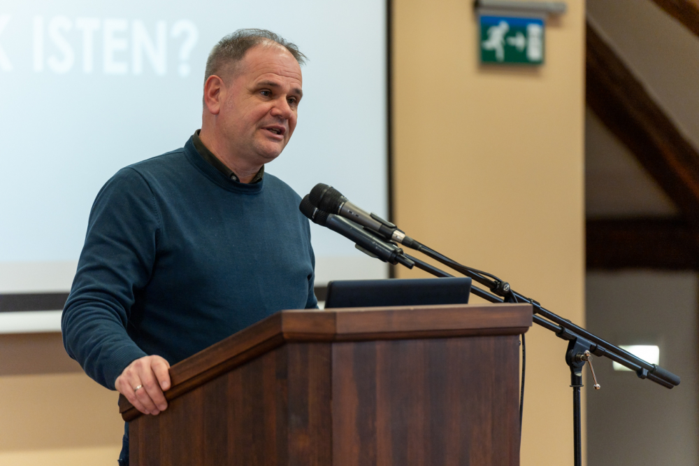 Koósz Roland az istenképiség kialakulásával kezdte mondandóját, mely az életünk egyes szakaszaiban folyamatosan formálódik és alakul, személyiségünk részévé válik, így egy életen át elkísér minket csecsemőkortól a halálunkig. A bennünk kialakult istenképiség minőségében kiemelkedő jelentőséggel bírnak a családban a szüleink révén szerzett hiteles tapasztásaink.