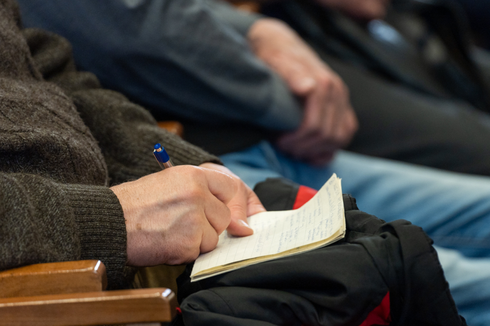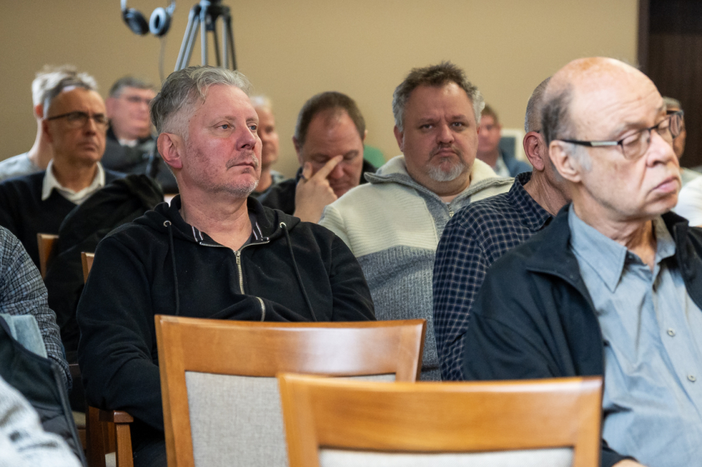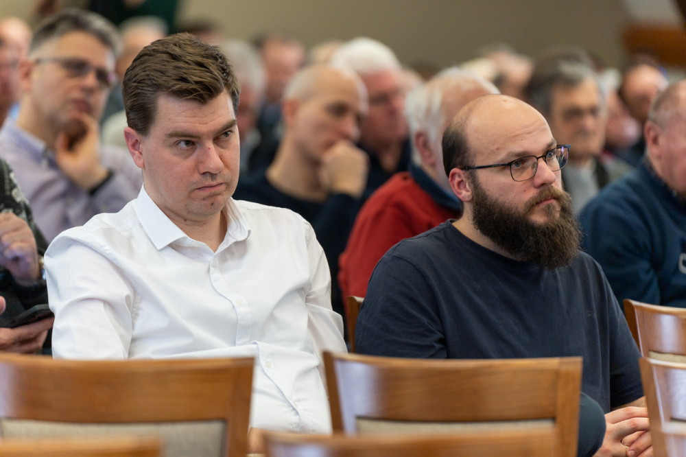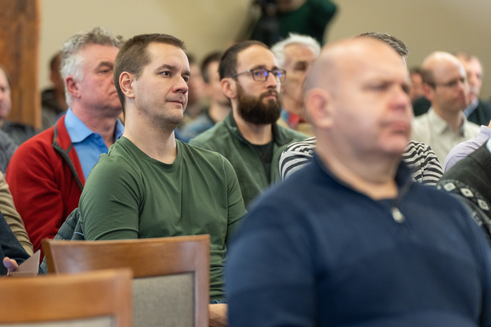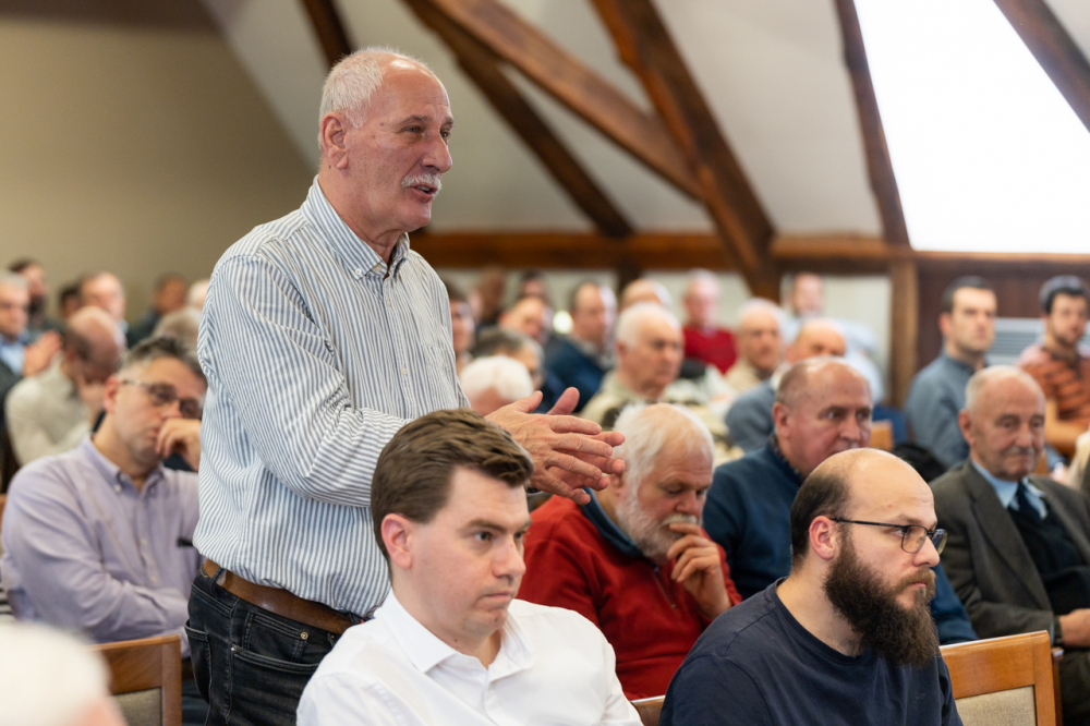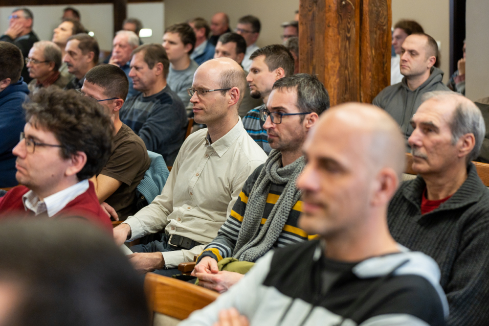 A 9 állandó helyszínen rendszeresen nagy érdeklődésre számot tartó programon jelen volt a sorozat állandó házigazdája, Felföldi László pécsi megyéspüspök és Koósz Roland, a Pécsi Egyházmegye oktatási irodavezetője, aki 25 éve szolgál az Egyházban és maga is állandó résztvevője a találkozóknak. Az előadó a főpásztor meghívására a témában szerzett személyes élményeit és tapasztalásait is megosztotta jelenlevő férfitársaival.