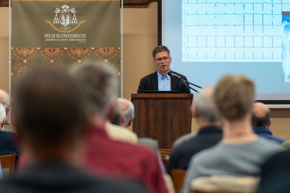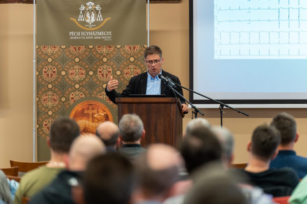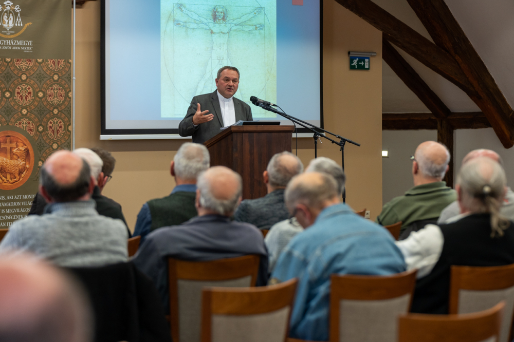 Őt követte Felföldi László pécsi megyéspüspök, a sorozat állandó házigazdája, akinek az előadása zárta a találkozót. A főpásztor úgy fogalmazott, hogy a test és lélek csodálatos egysége nem választható el a meghatározó családi, férfi és társadalmi közösségtől, amelyben meg kell találni férfiúi küldetésüket.