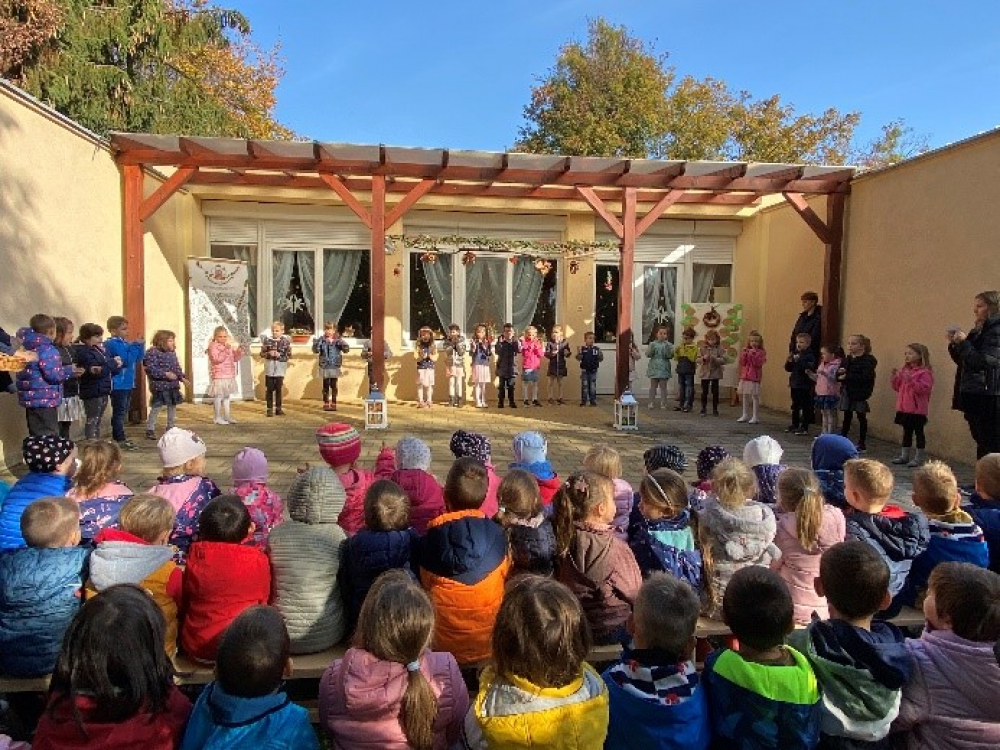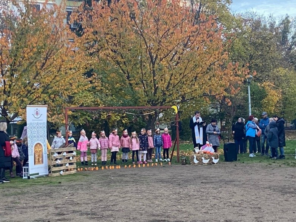 Hagyományunkhoz híven, idén is megrendezésre került óvodánkban, november 11-én a Márton nap. Csoportjaink egész héten készülődtek a pénteki Márton napra. Mind a négy csoportunk projekt hét keretein belül dolgozta fel a jeles napot. A legenda feldolgozása során a gyermekek megismerhetik Szent Márton személyét, életét, jó tetteit, jószívűségét, embertársai és Isten iránti szeretetét. A szentek cselekedetei nevelő hatással bírnak a gyermekekre, példaértékűek lehetnek mindenki számára. A projekt zárásaként, péntek délután a jeles napot egy ünnepléssel fejeztük be. Nagycsoportos óvodásaink műsorral készültek, majd Zoli atya megáldotta a gyerekek által készített lámpásokat. Ezután közösen, énekelve felvonultunk a világító lámpásokkal. Az ünneplést egy agapéval zártuk, ahol vendégül láttuk a családokat.
