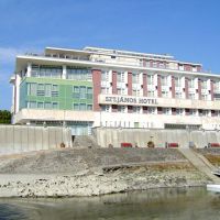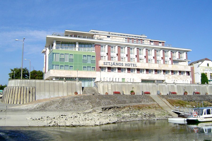 A szálloda közvetlenül a Duna partján fekszik, a szárazföldön és a vízen utazók védőszentjéről, Nepomuki Szent Jánosról kapta nevét.