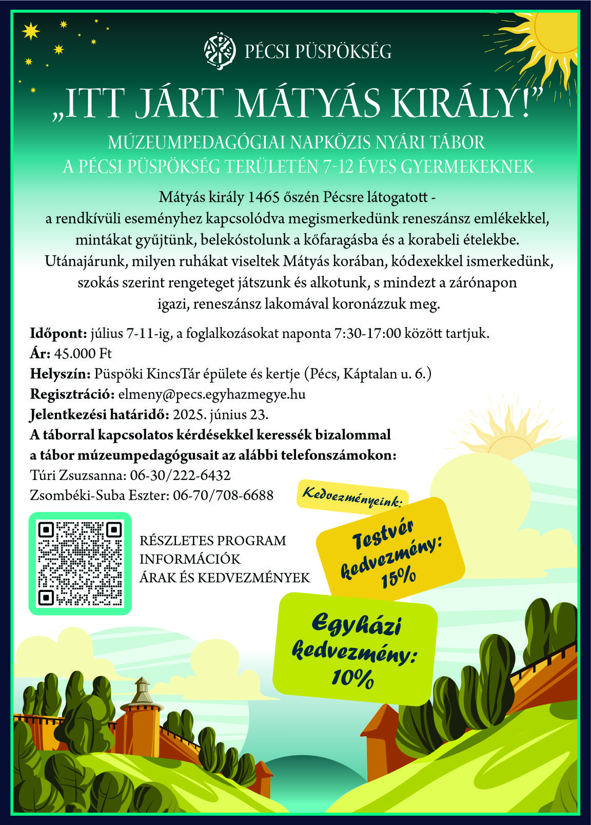 2025-ben is szeretettel várunk minden 7-12 éves gyermeket a Pécsi Püspökség nyári táborába!
